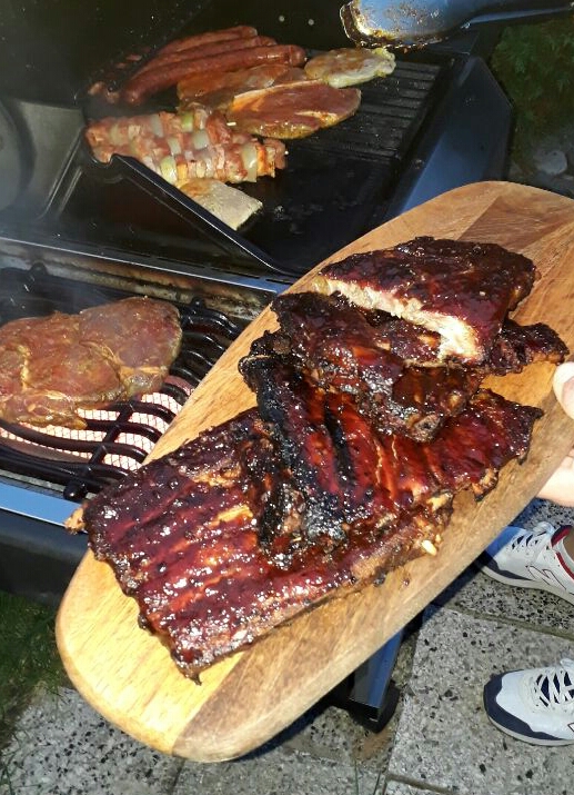 Aber ans eigene Brisket-BBQ habe ich mich noch nicht getraut. Das Problem: es ist ja eine riesige Menge Fleisch, und wir sind nur zwei Personen. Dazu kommt, dass es ja durchaus bis zu 15 Stunbden dauern kann, nach dem Motto „low and slow“. Aber irgendwann steht es doch noch auf dem Programm. Zunaechst muss ich noch mal weiter an den Rippchen ueben. Die sind mir immer noch nicht perfekt gelungen. Was dagegen unheimlich gut klappt: mein selbst gepoekeltes und geraeuchertes Kasseler. Was ich als sogenanntes „Kasseler“ hier in den Restaurants bekomme, die angeblich „authentic German food“ bieten, das treibt mir die Traenen in die Augen. Diese Machwerke sollte man den Koechen an den Kopf schmeissen.