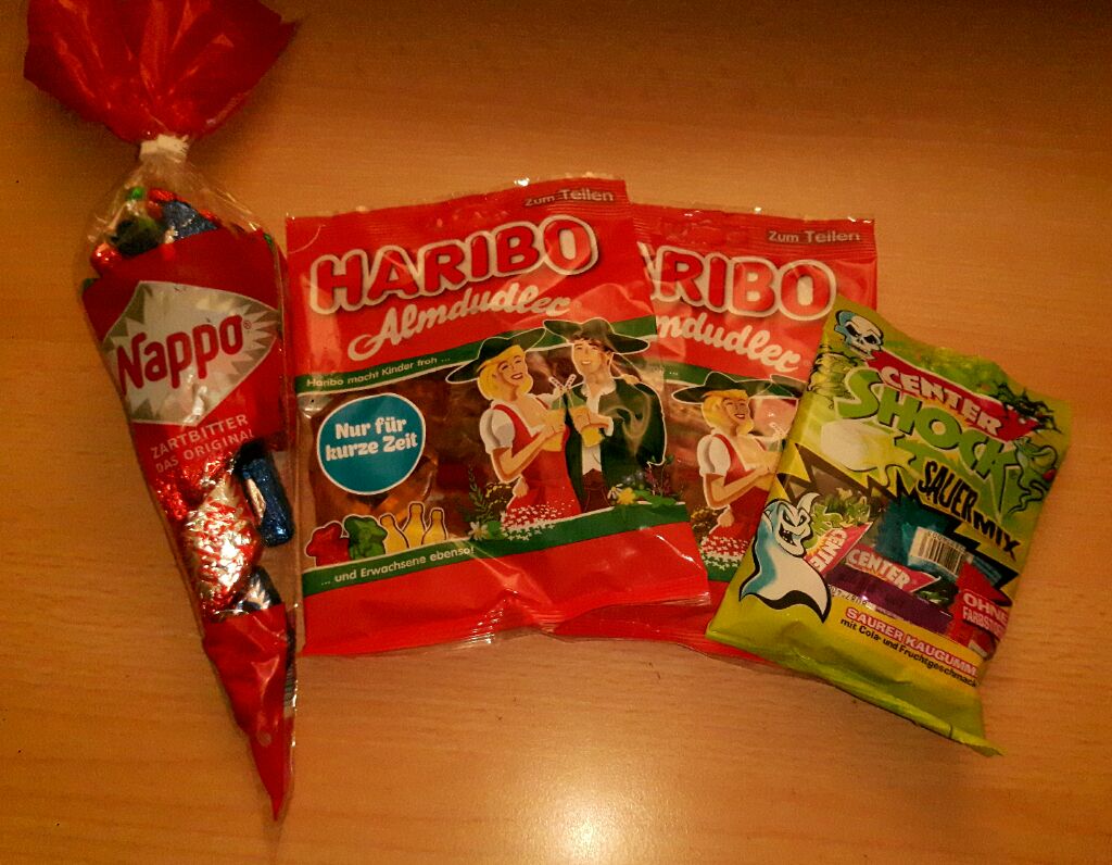 Und ganz am Ende des Beutezuges gab es „Almdudler“-Haribos (!!!) und weitere Süßigkeiten für den Wolf. Irgendwo war er über die Nachricht gestolpert, dass es diese Haribos gäbe und seitdem vergebens außerhalb des Internets auf der Suche gewesen-
