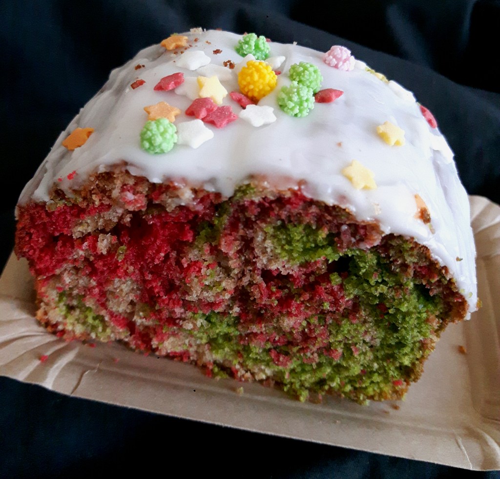 Er war genauso lecker, wie er bunt war! Leider wird Papageienkuchen recht selten irgendwo verkauft… Deswegen muss ich einfach immer zuschlagen, wenn es ihn irgendwo gibt- 😺🌞🎂