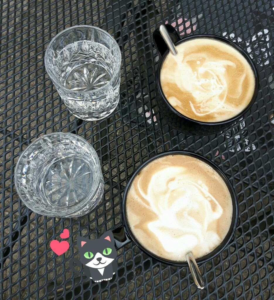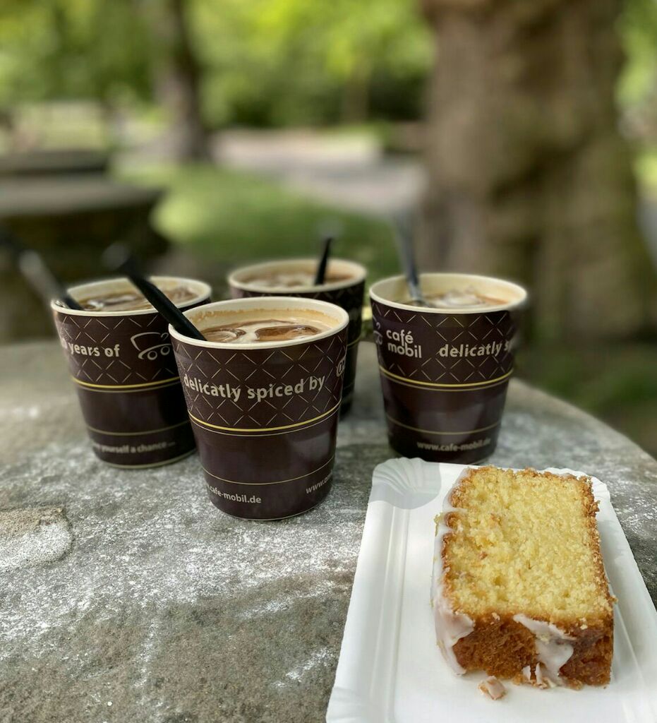 3.) tranken wir am Folgemorgen riesige Portionen Karamell-Macchiato und Wasser auf ihrer noch kühlen Terrasse. Insofern ging es uns Beiden kulinarisch wahrlich mehr als prima.