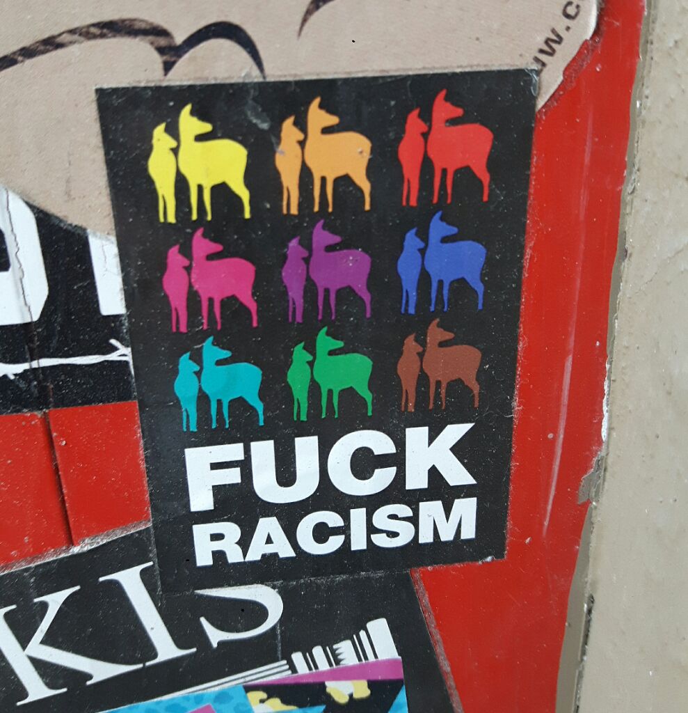 Während des Hinwegs zum Auflaufladen begegneten uns witzigerweise noch ein paar bunte Rehe (= es *sind* Rehe, oder? Keine Alpakas?!) und wir standen alle fotografierend vor dem Sticker: