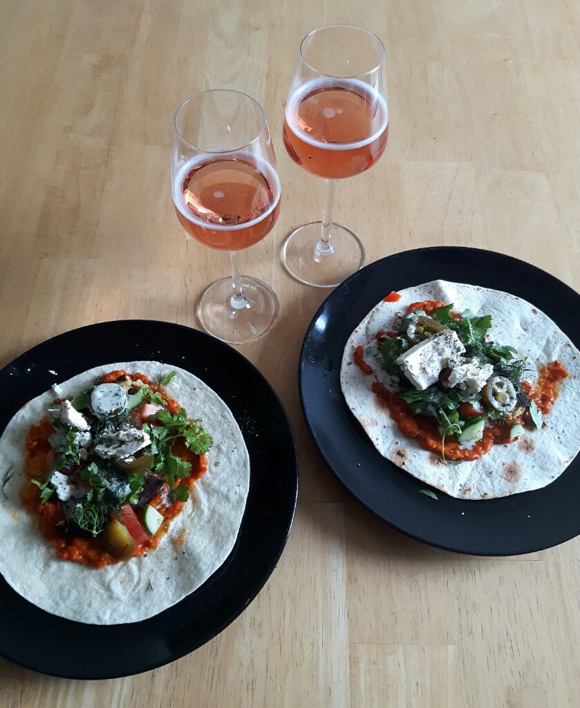 Heute Abend gab es superfrische selbstgemachte Falafel-Dürüm mit Gurken, Tomaten, extra Jalapeños, Weichkäse, Kräutern, der Limetten-Chili-Mayo und scharfem Ajvar…