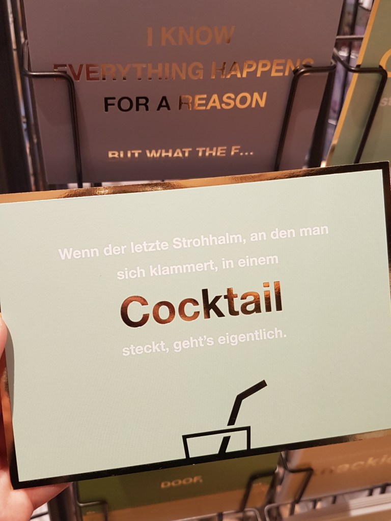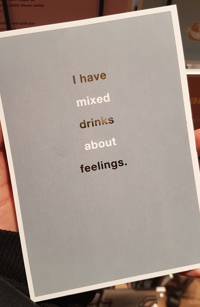 Passend zu der Bar-, Kollegen- und Gastronomiethematik entdeckte ich auf einem Heimwegszwischenstopp diese drei Postkarten (= und fotografierte sie prompt für euch ab):