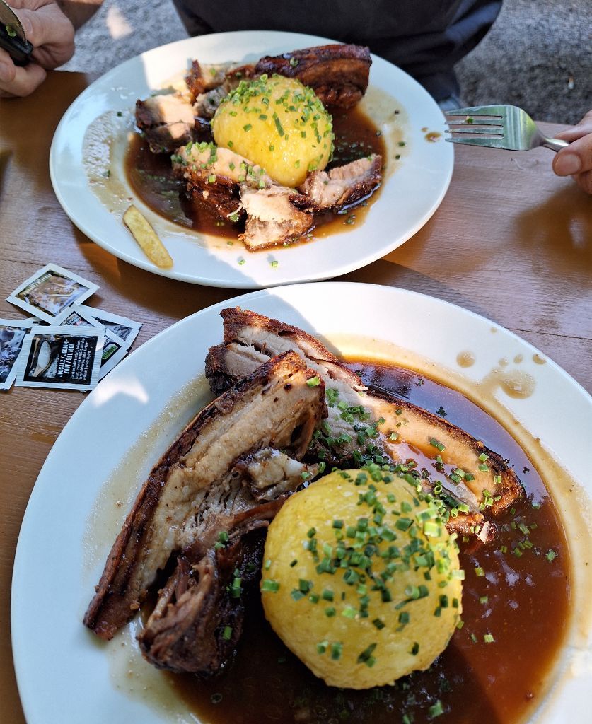 Damit neckte er uns noch eine Weile in liebevollem Stolz, *UND* kaufte mir Almdudler, Eis und Schweinebraten mit Kartoffelknödel, weil ich mich trotz Bahn-Butterkuchen und Kaffee mega ausgehungert fühlte.