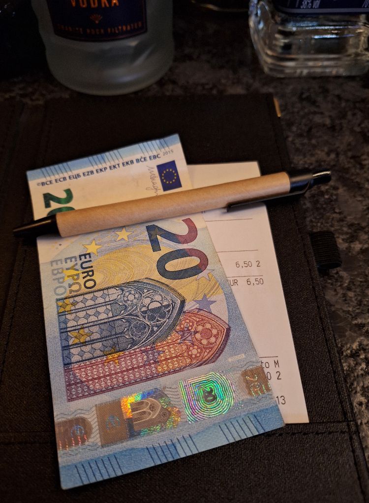 Jede Begegnung war einfach unglaublich lieb 😺, und gestern Abend in der Hotellobby drückte mir einer der Drei zum Abschied persönlich sein Mäppchen in die Hände (= das dient bei uns und vielerorts in der Gastronomie zur eleganten Vorlage von Rechnungen):